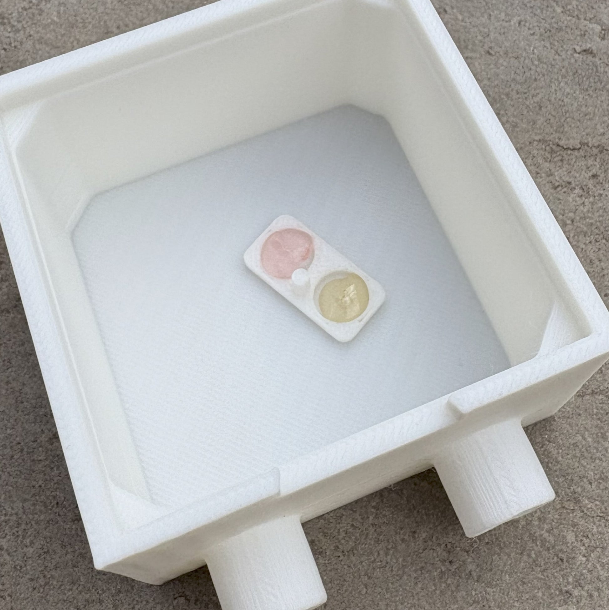 Crafted with precision, each dish measures just 20mm x 10mm x 8mm, making it perfectly sized for formicarium's and ant farms of all types. The smooth 3D-printed surface allows for easy cleaning and minimizes waste buildup, while the dual-bowl layout helps reduce cross-contamination.